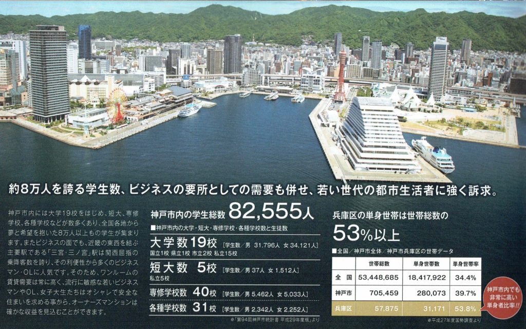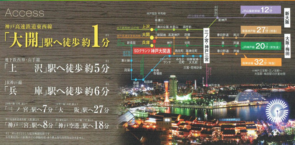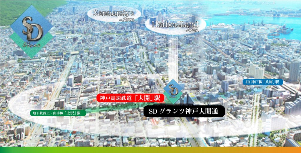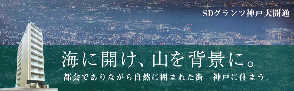 ●名称/SDグランツ神戸大開通 ●所在地/兵庫県神戸市兵庫大開通7丁目 ●交通/神戸高速鉄道東西線「大開」駅徒歩約1分/地下鉄西神・山手線「上沢」駅徒歩約5分/JR神戸線「兵庫」駅徒歩約6分 ●地域・地区/近隣商業地域・防火地域 ●地目/宅地 ●建ぺい率/68.69% ●容積率/399.99% ●敷地面積/182.20㎡ ●建築面積/125.15㎡ ●建築延床面積/1,010.39㎡ ●構造・規模/鉄筋コンクリート造地上10階建 ●総戸数/27戸 ●建築確認番号/第HK17−40596号 ●私道負担/なし ●間取り/1R(27戸)●住居専有面積/26.83㎡〜26.90㎡ ●バルコニー面積/3.20㎡〜3.47㎡ ●販売価格/2,100万円(税込)〜2,190万円(税込)●分譲後の権利形態/敷地及び建物共有部分は区分所有者全員の住居専有面積・持分割合による共有。建物専有部分は区分所有になります。●管理形態/区分所有者全員による管理組合を結成し、管理会社へ委託していただきます。●施行日/平成31年2月中旬 ●取引態様/仲介